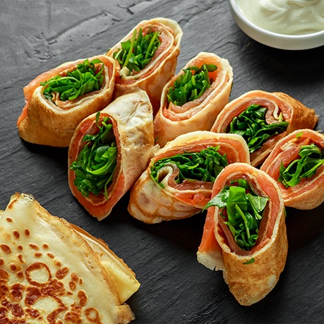Якщо ваш заклад спеціалізується на стравах середземноморської кухні, додайте в меню пшеничні млинці, загорнуті в конверти, з начинкою з фети, курячого філе су-від та зеленої цибулі. Подавати їх найкраще з нейтральним грецьким йогуртом.