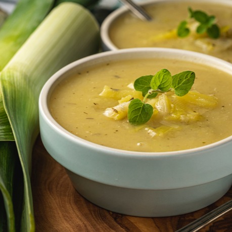 Для приготування вам знадобляться прості інгредієнти та зовсім небагато часу. Декілька слів варто сказати про цибулю-порей. Вона відрізняється від звичайної цибулі особливим ніжним смаком і часто використовується у стравах французької кухні — супах, соусах тощо. Одне з найбільш гармонійних поєднань — суп-пюре з цибулі порея та селери, заправлений вершками, сиром та спеціями.
