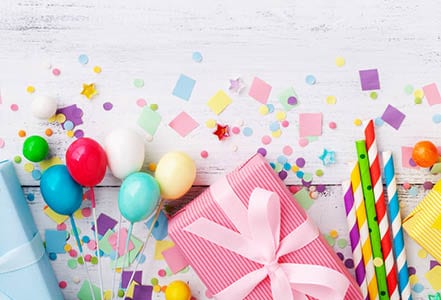Надувні кульки, соломинки для напоїв, свічки для торта, дудки-язички, парасольки для морозива, святкові ковпаки, костюми та інші атрибути допоможуть організувати веселу вечірку.